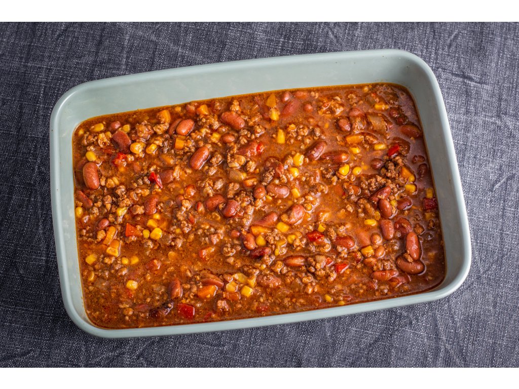 Směs mletého masa s pikantní omáčkou a fazolemi. Sterilované hotové jídlo bez přílohy.