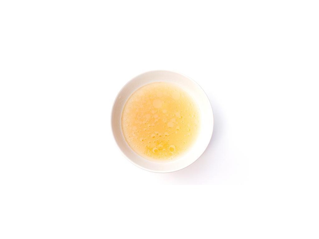 masový vývar 93 % (pitná voda, kuřecí kosti, vepřové kosti, mrkev, cibule, česnek, slunečnicový olej, směs koření), Kikkoman sójová omáčka (pitná voda, sójové boby, pšenice, jedlá sůl), rybí omáčka (ančovičky 77 %, jedlá sůl, cukr), Rauch citrónová šťáva z koncentrátu, jedlá sůl, třtinový cukr. Na přípravu 1 litru masového vývaru bylo použito 350 g kuřecích kostí, 250 g vepřových kostí a 125 g zeleniny.